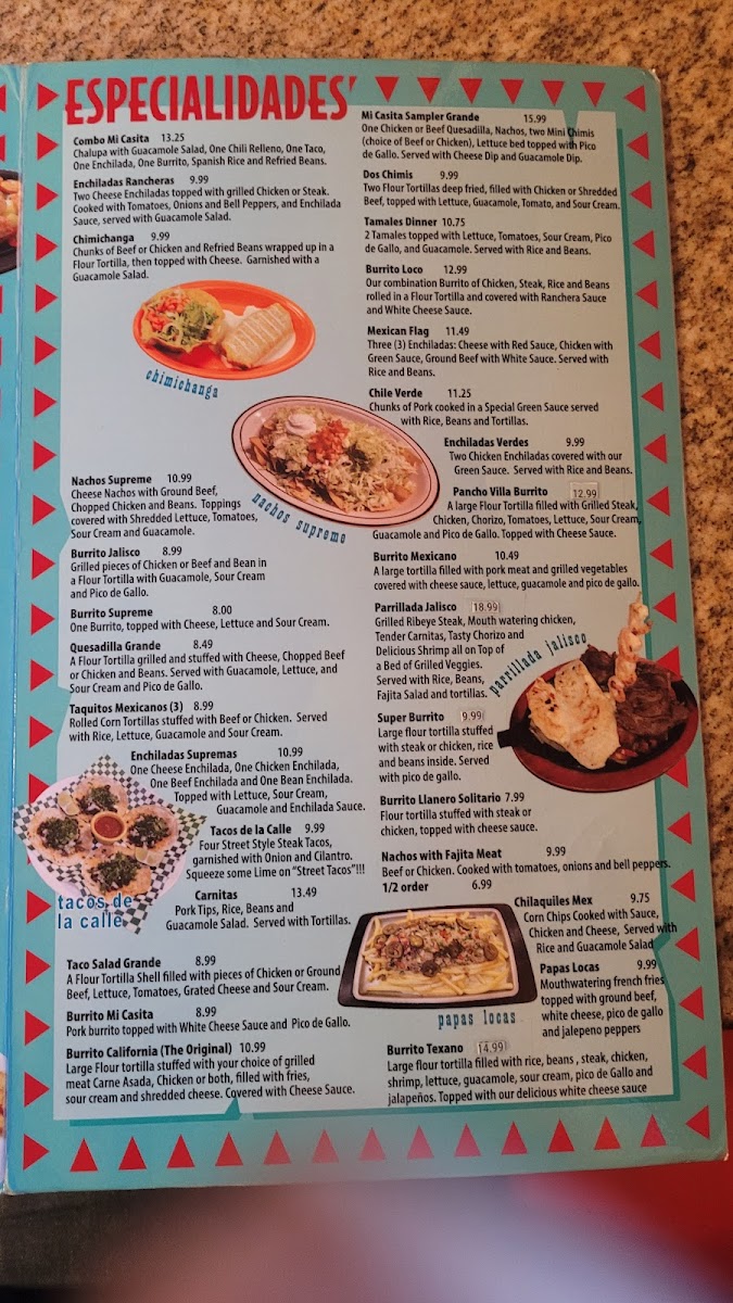Mi Casita Mexican Restaurant Menu